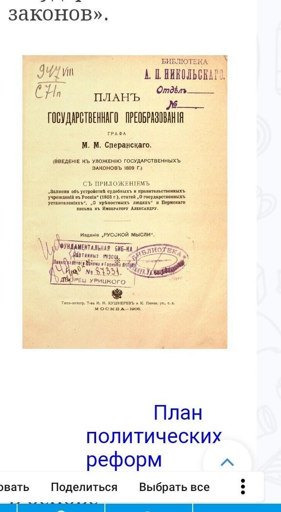 1. Какие положения из проекта реформ М.М.Сперанского ты считаешь важными и почему?