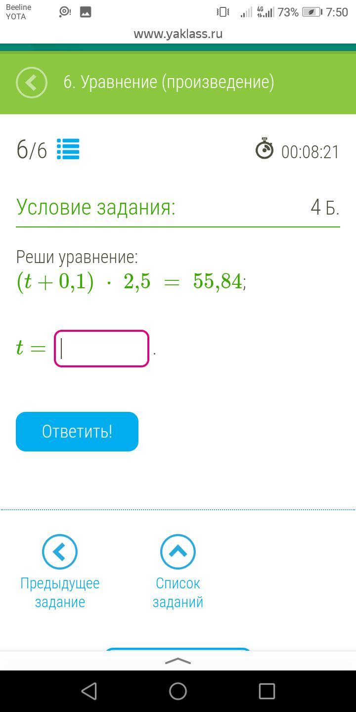 t + 0,1 = 55,84 ÷ 2,5
