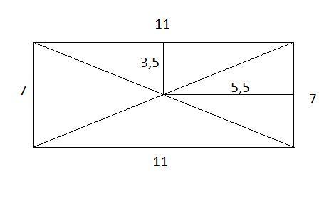 Расстояние от точки пересечения диагоналей прямоугольника до его смежных сторон равно 5,5 см и 3,5 см.