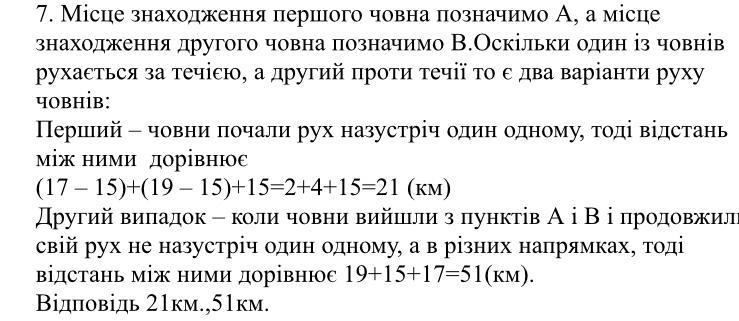 7. Відстань між двома човнами 15 км. Яка відстань буде між ними,