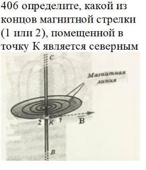 определите, какой из концов магнитной стрелки (1 или 2), помещенной в точку К является северным