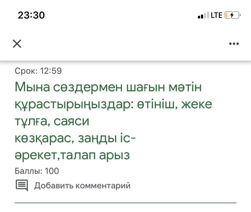 Мына сөздермен шағын мәтін құрастырыңыздар: өтініш, жеке тұлға, саяси