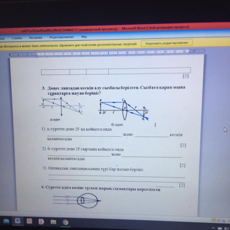 1) а-суретте дене 2Ғ екі фокустық қашықтыққа қойылса, онда оның 2Ғ қашықтықтағы дененің өлшемімен бірдей, шын , төнкерілген кескін қалыптасады.