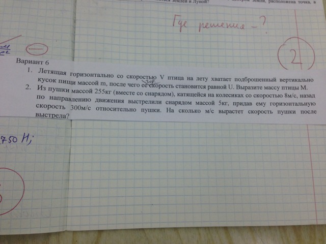 1. летящая горизонтально со скоростью V птица на лету хватает подброшенный вертикально кусок пищи массой m, после чего ее горизонтальная скорость становится равной U. Выразите массу птицы m.