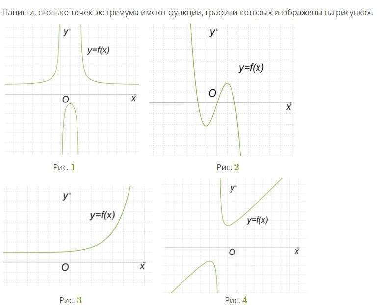 Ответ: на рис.1 - 1 точка; на рис.2 - 2 точки; на рис.3 - нет точек; на рис.4 - 2 точки экстремума. Ответ:на рис.4 - 2 точки экстремума