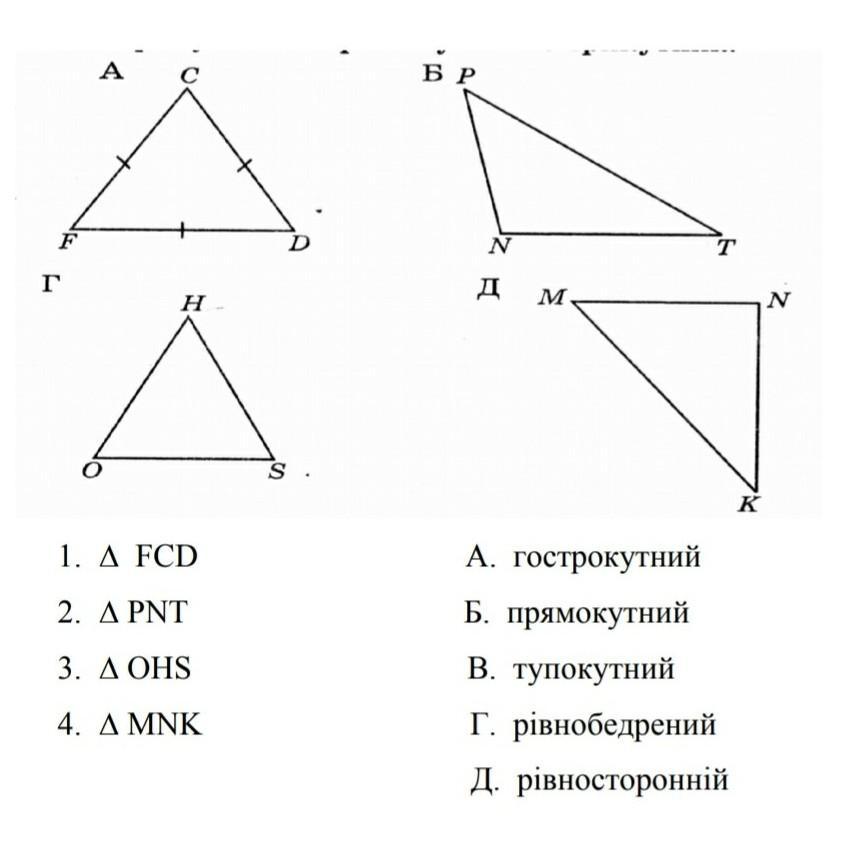 Помогите ❤️ 20 баллов даюКористуючись малюнком, встановіть відповідності між трикутниками: