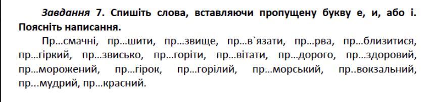 Пресмачні, пришити, прізвище, прив'язати, прірва, приблизитися, пригірський, прізвисько, пригоріти, предорого, прездоровий, приморожений, пригірок, пригорілий, приморський, привокщальний, премудрий, прекрасний.