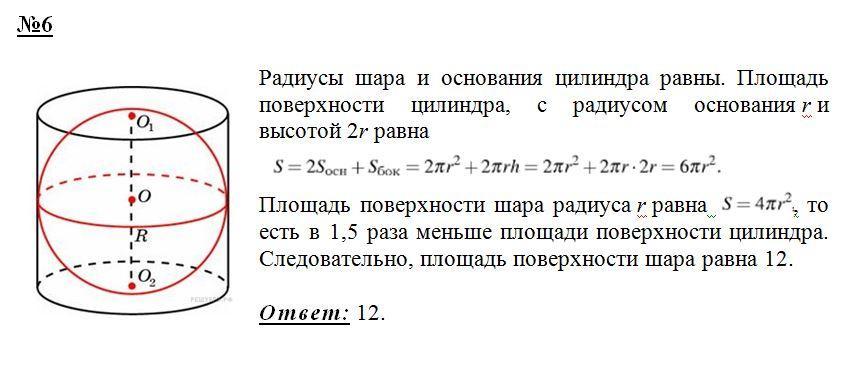 6. Шар вписан в цилиндр. Площадь полной поверхности цилиндра равна 90 см2. Найдите площадь поверхности шара.