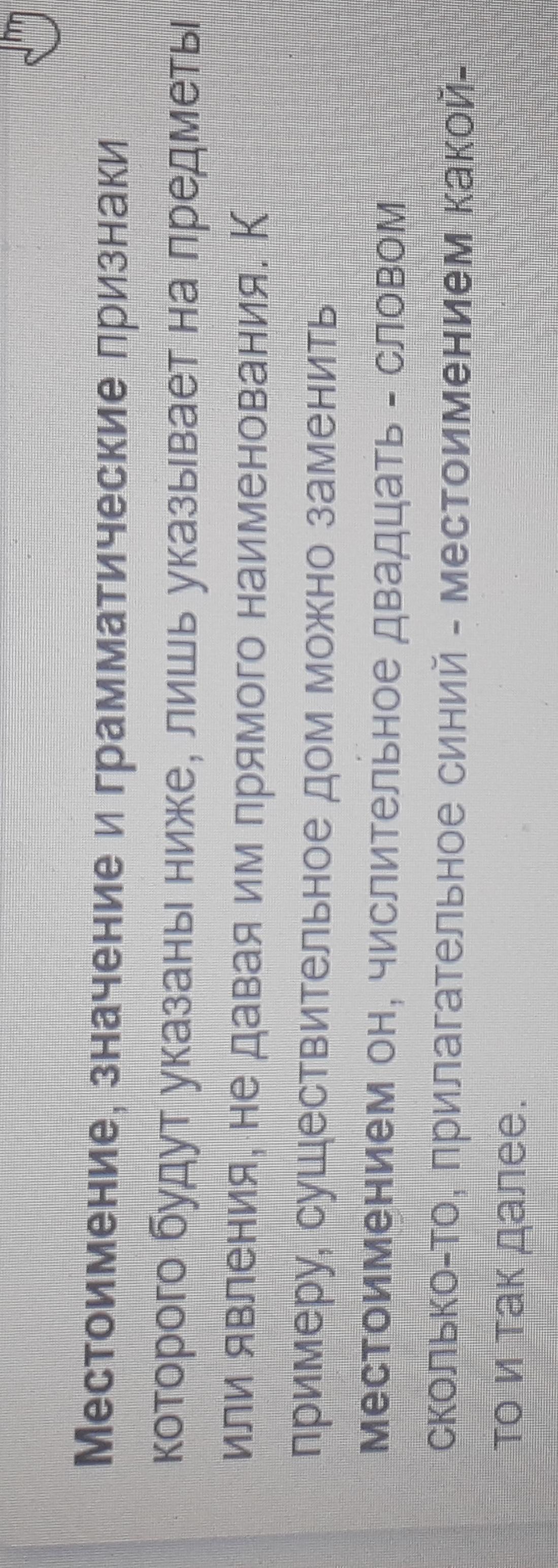 Ответ: Местоимение,значение и грамматические признаки которого будут указаны ниже, лишь указывает на предметы или явление, не давая им прямого наименования.