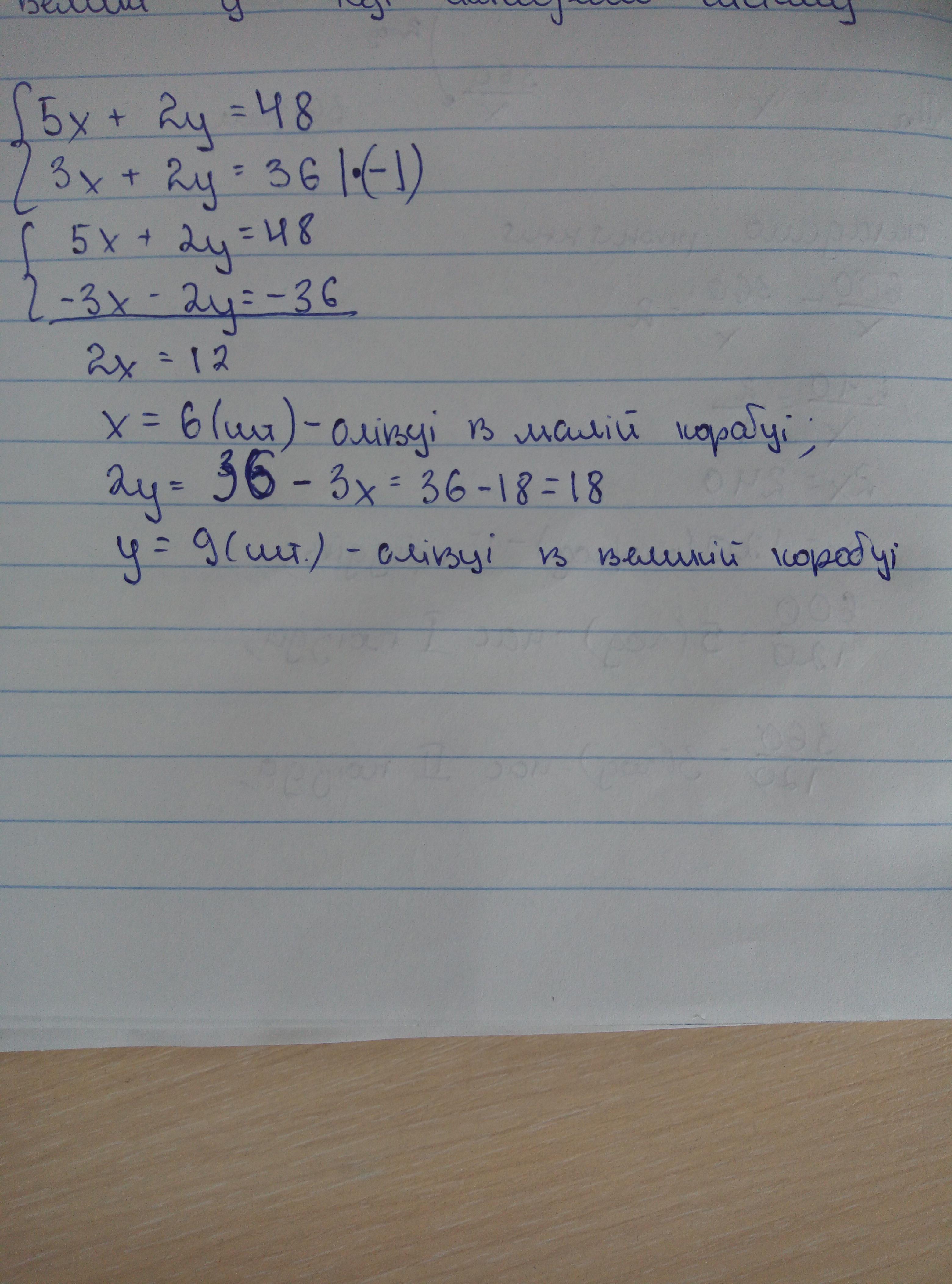 Нехай малі коробки будуть х, а великі - у. Тоді складемо систему