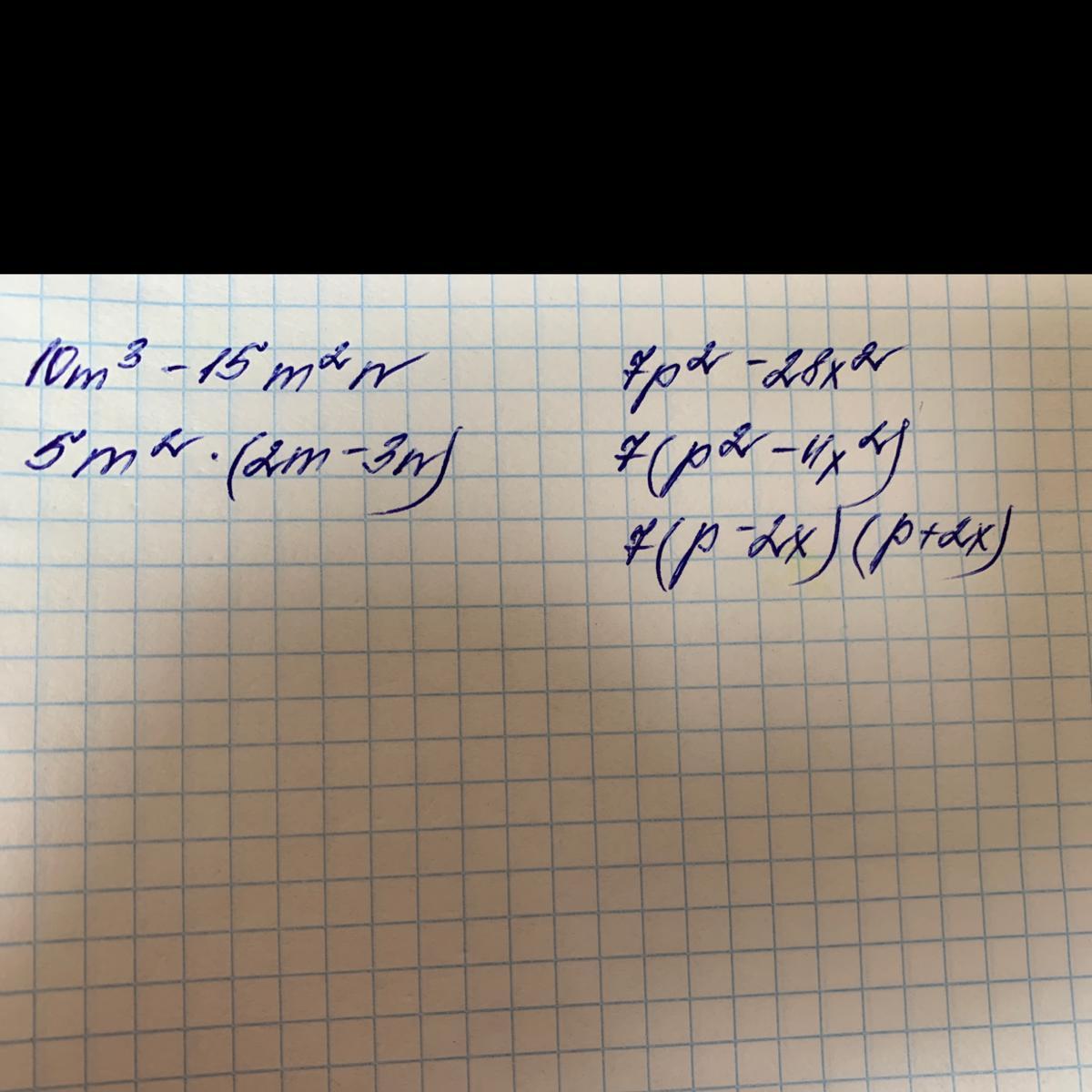2) 7p²-28x²=7(p²-4x²)=7(p-2x)(p+2x)
