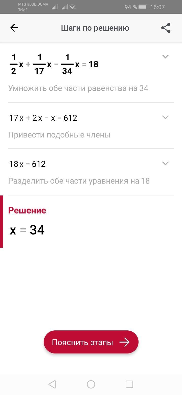 Не-а. Подставьте 34 вместо х и проверьте. Не подходит. х=30,6