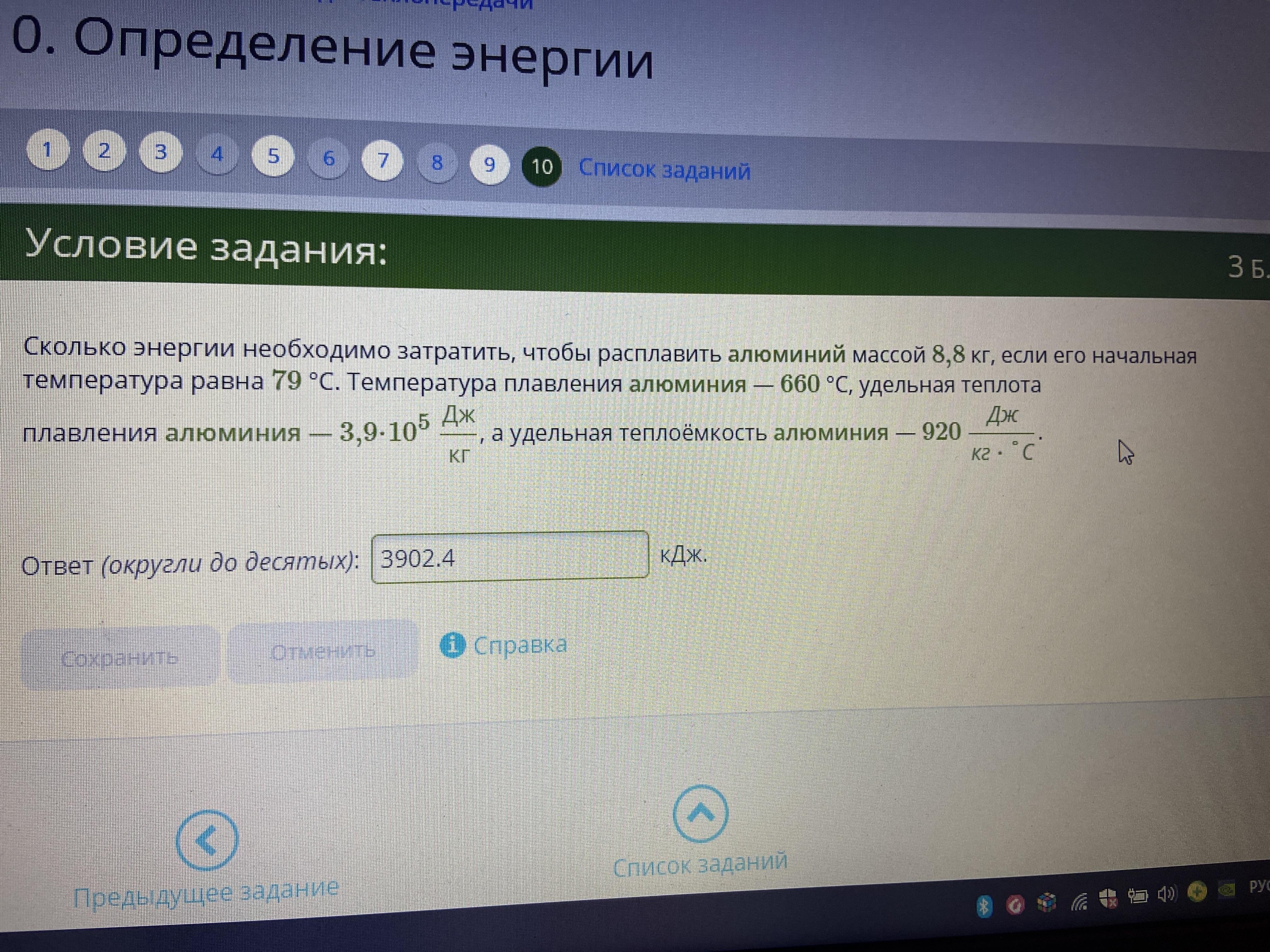 Объяснение: нагрев до от 79 до 660: 8,8*(660-79)*920=4276160