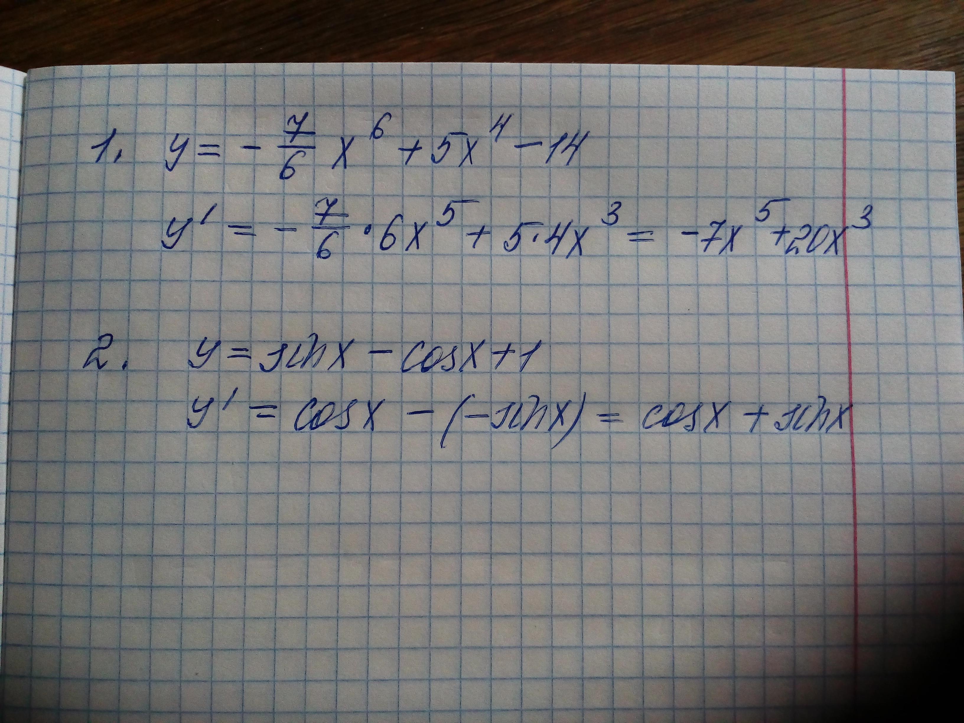 1. Укажіть похідну функції у = -7/6 x6+ 5x4 - 14