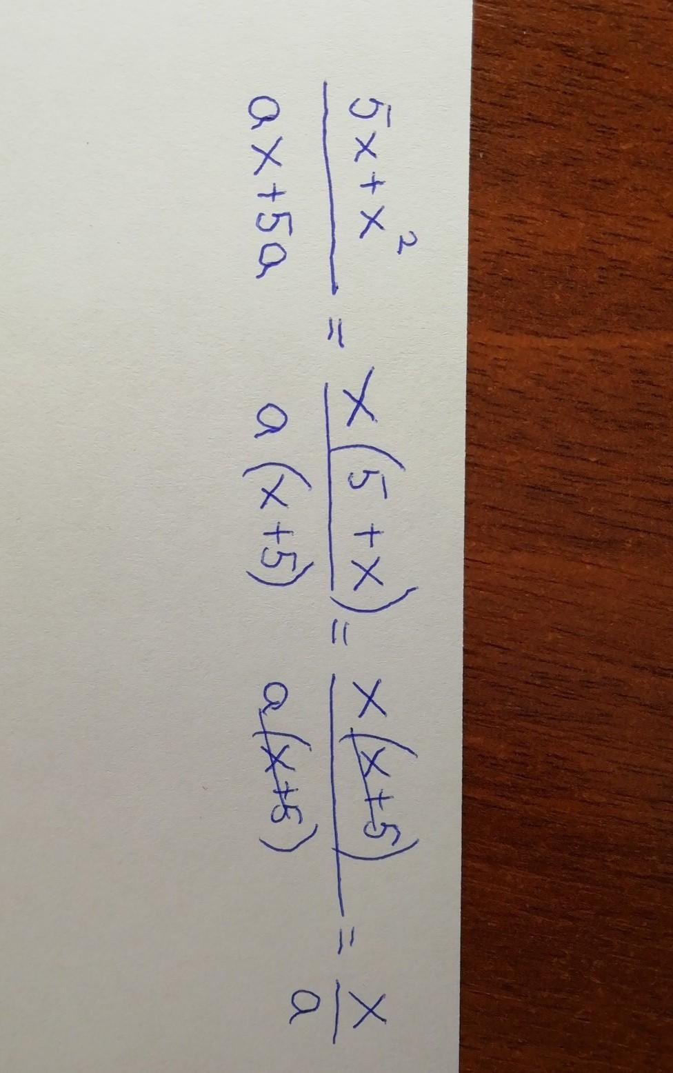 выносим за скобку в числителе x, в знаменателе а, после это сокращаем одинаковые части