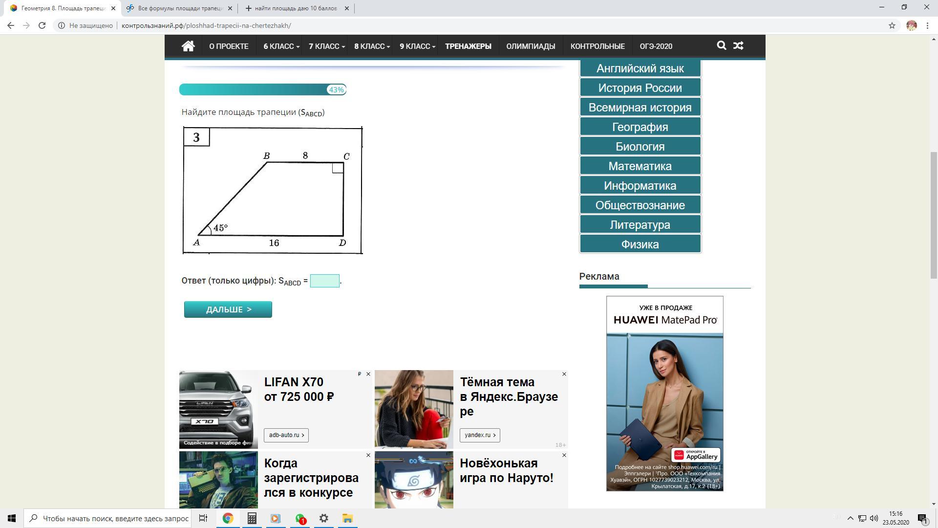 Найдем площадь квадрата 8 на 8: 8²=64 см²
