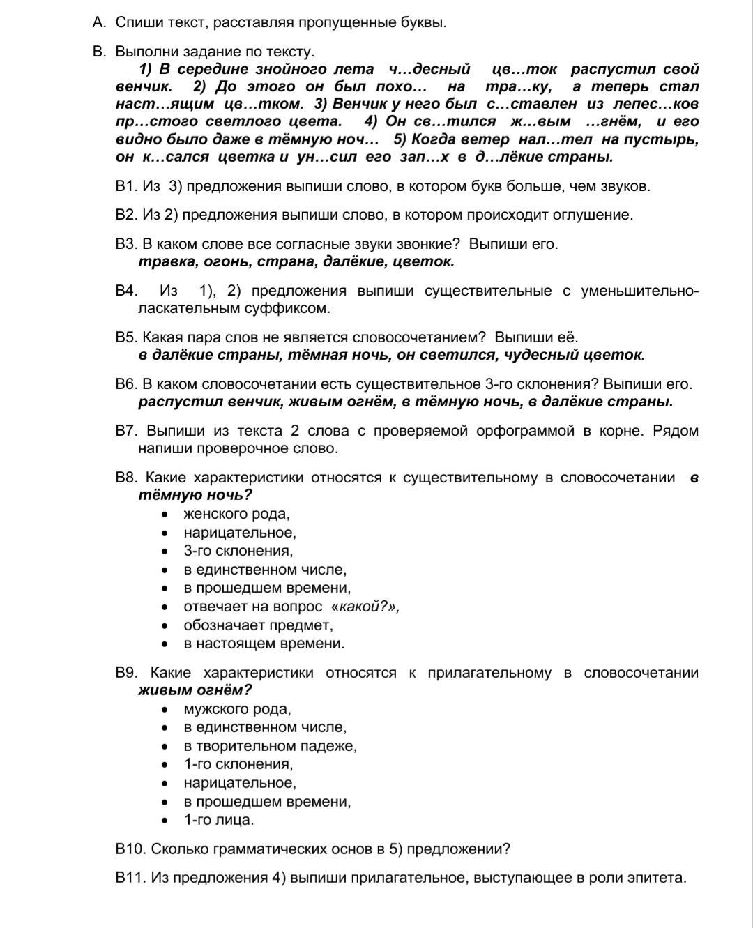 В. 1)В середине знойного лета чудесный цветок распустил свой венчик. 2)До этого он был похож на травку, а теперь стал настоящим цветком. 3)Венчик у него был составлен из лепестков простого светлого цвета. 4)Он светился живым огнём, и его видно было даже в тёмную ночь. 5) Когда ветер налетал на пустырь, он касался цветка и уносил его запах в далёкие страны.