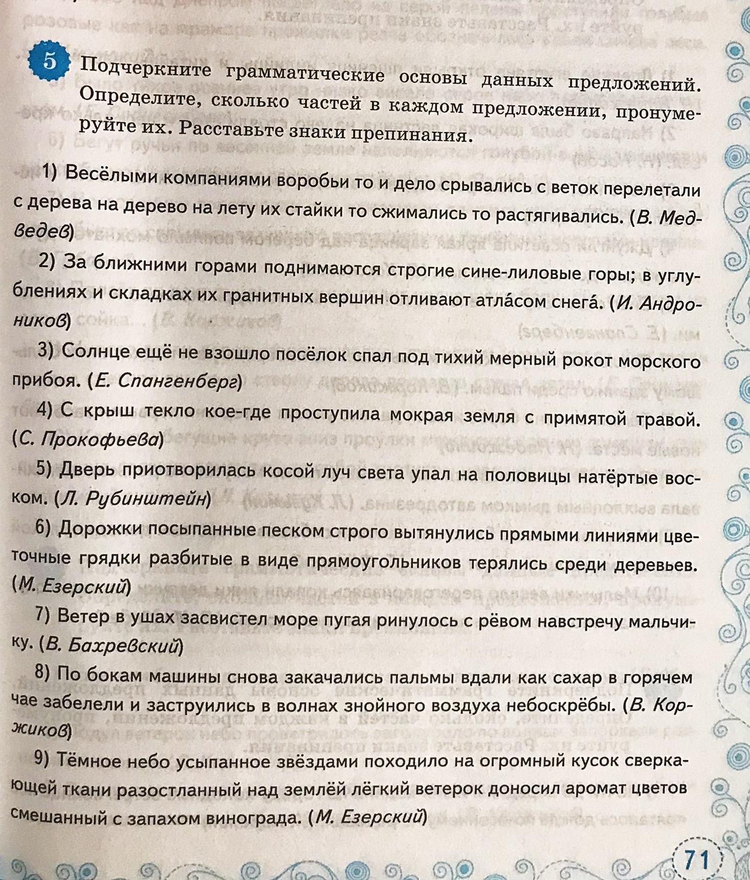 2. За ближними горами поднимаются строгие сине-лиловые горы; в углублениях и складках их гранитных вершин отливают атласом снега.