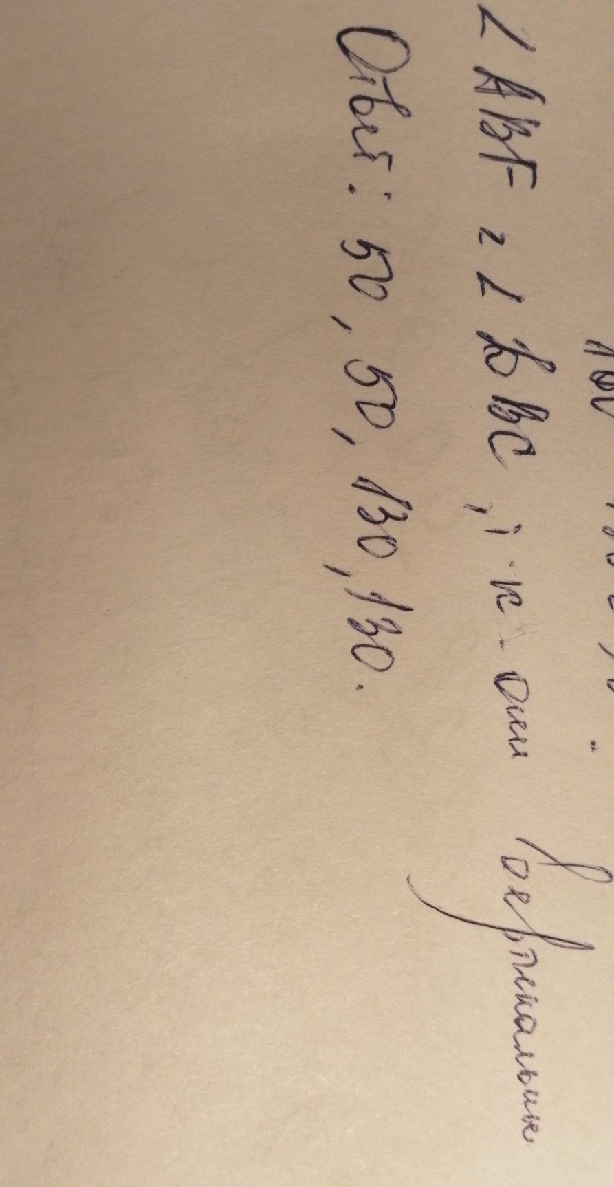 ABF = 180 (развернутый угол) - 130 = 50 градусов