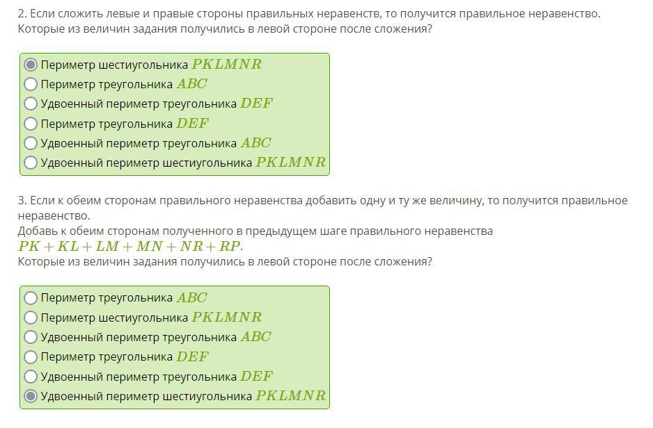 Добавь к обеим сторонам полученного в предыдущем шаге правильного неравенства PK+KL+LM+MN+NR+RP.