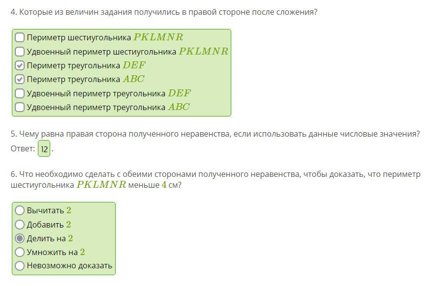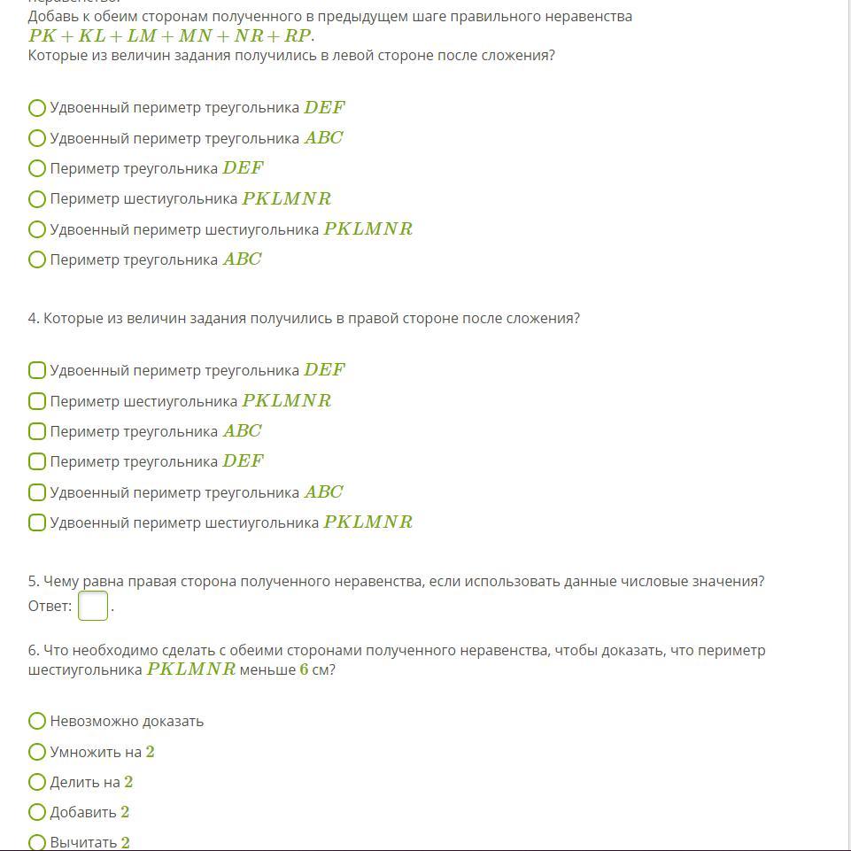 6. Что необходимо сделать с обеими сторонами полученного неравенства, чтобы доказать, что периметр шестиугольника PKLMNR меньше 6 см?