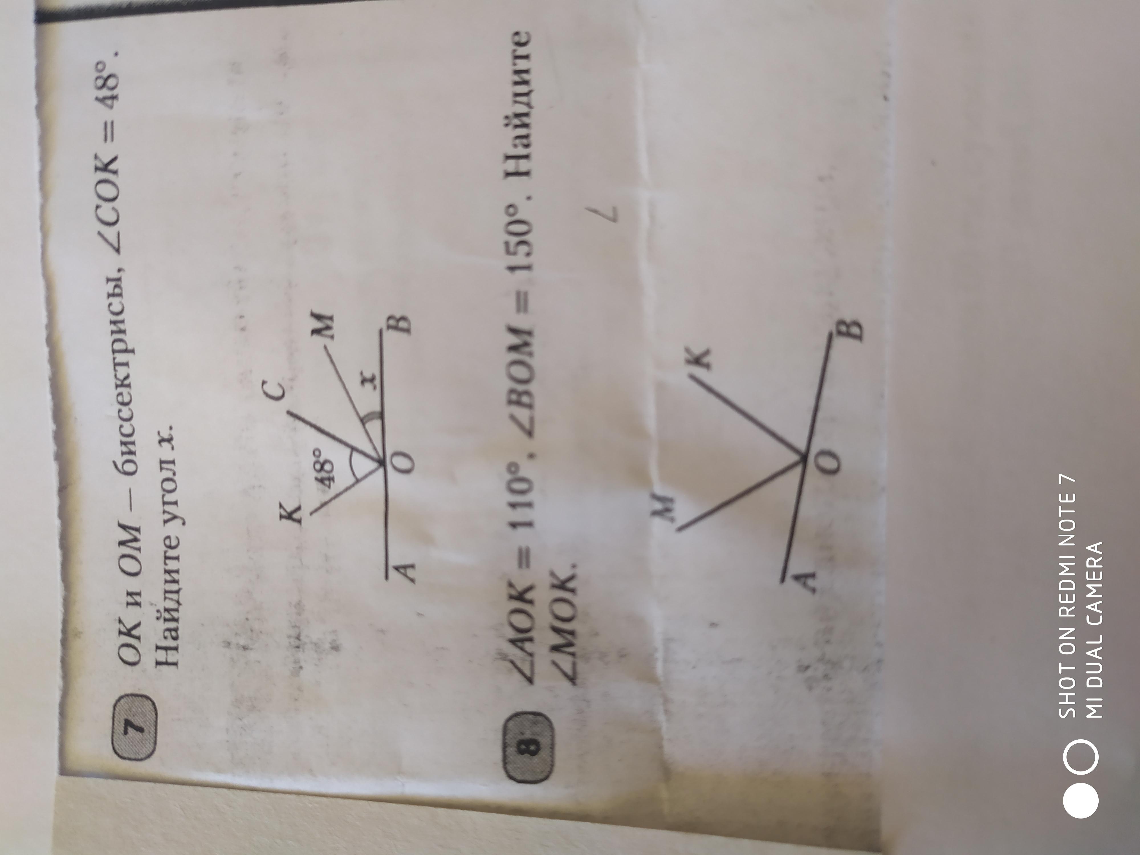 Значит, ∠СОМ=∠МОВ=84° ÷ 2=42°