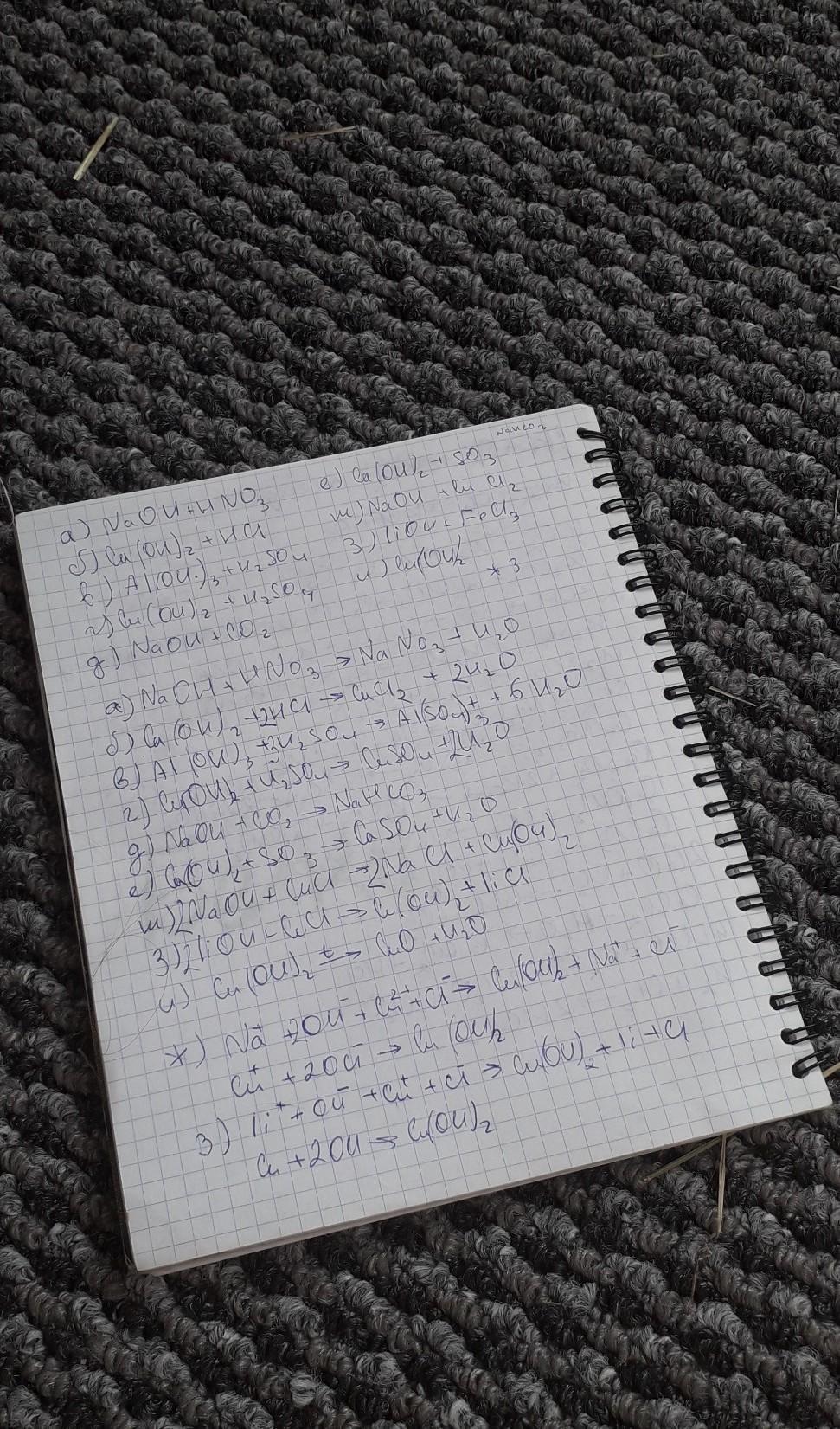 б) Ca(OH)2 + HCl → ж) NaOH + CuCl2 →