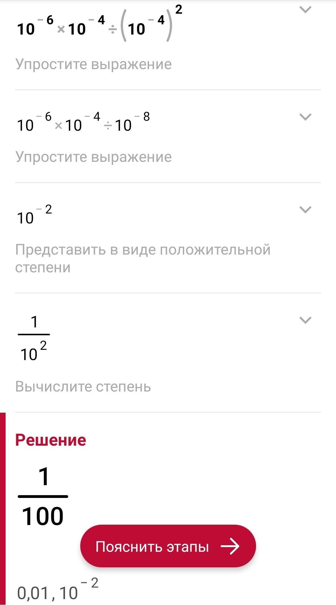 10 в -6степени*10 в -4степени :(10 в -4 степени)в квадрате=