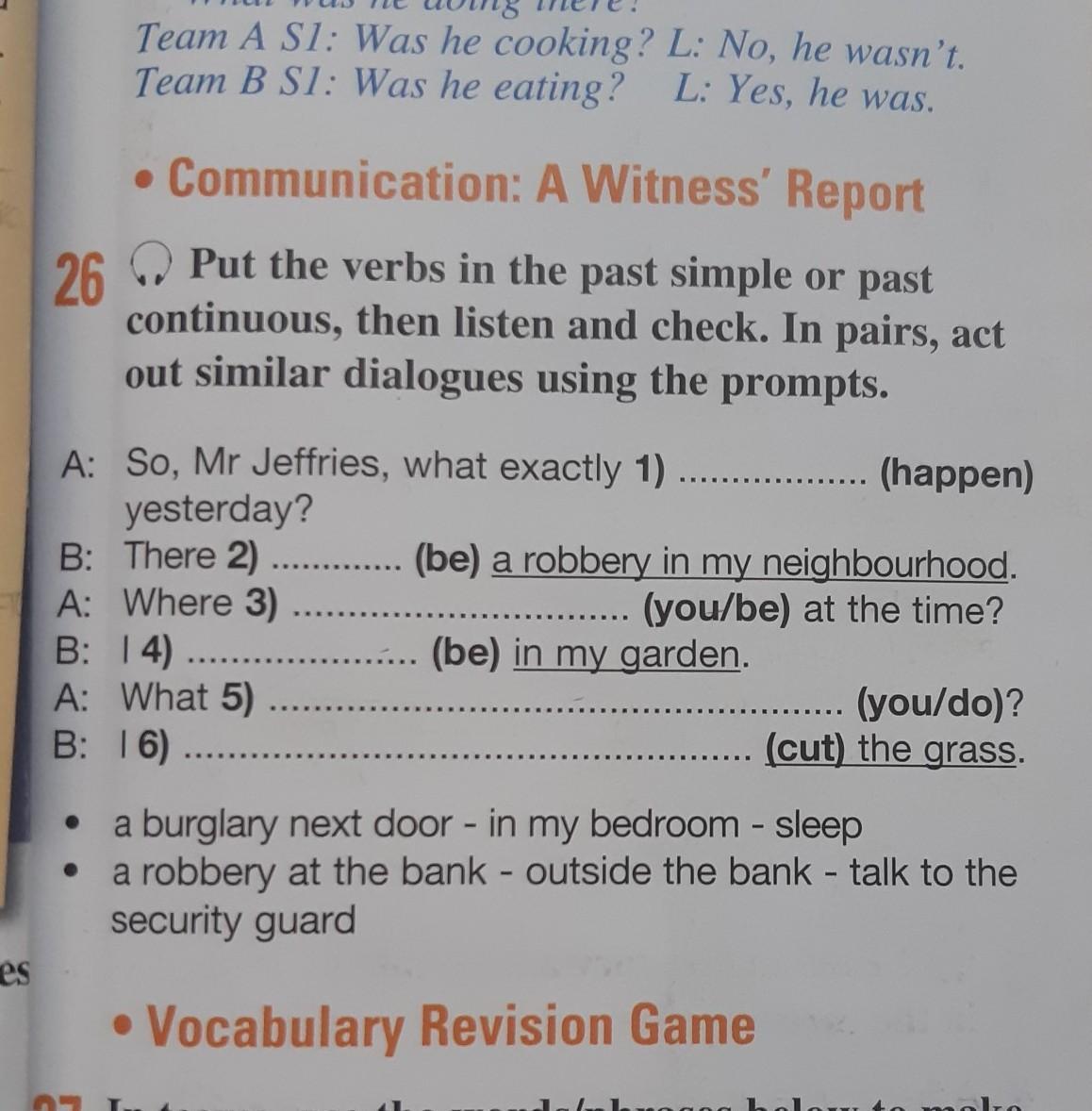 b: There 2) ...... (be) a robbery in my neighbourhood.