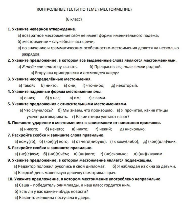 6. никогО, нЕчего, никтО, нЕкий, нискОлько