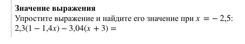 2,3(1-1,4х)-3,04(х+3)=2,3-3,22х-3,04х-9,12=-6,82-6,26х