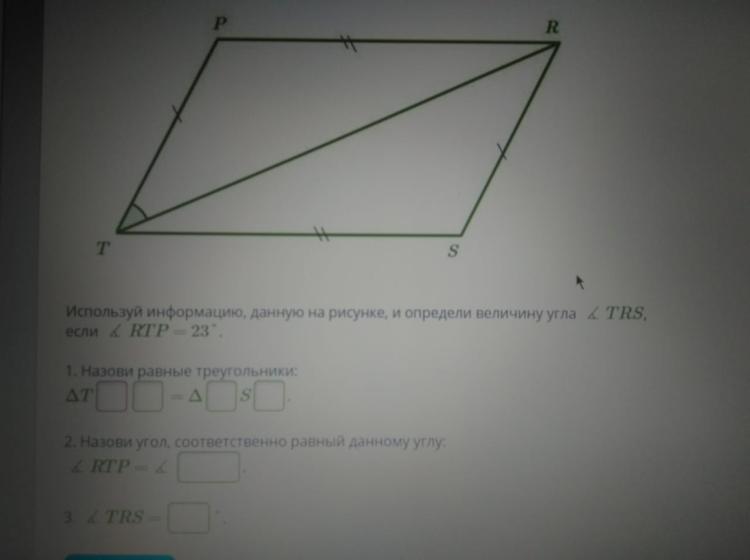 ∠TRS = ∠RTP = 23° как внутренние накрест лежащие углы при PR ║ TS и TR секущей.