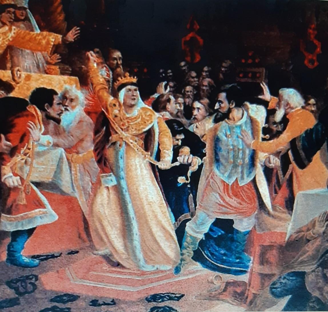 Картина, написанная Яном Матейко в 1872 году, изображающая эпизод Ливонской войны и посольство царя Ивана IV Грозного к королю польскому и великому князю литовскому Стефану Баторию с просьбой о мире.