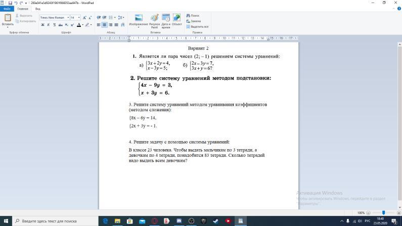 Ответ: 4х-9у=3, х+3у=6. 4х-9у=3,х=6-3у. 4(6-3у)-9у=3. у=1. х=6-3×1. х=3. (х, у) =(3, 1).