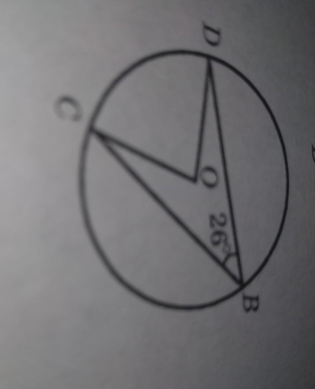 Точка O – центр кола, зображеного на рисунку. Яка градусна міра кута DOC?