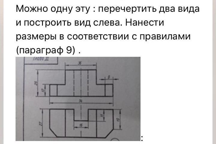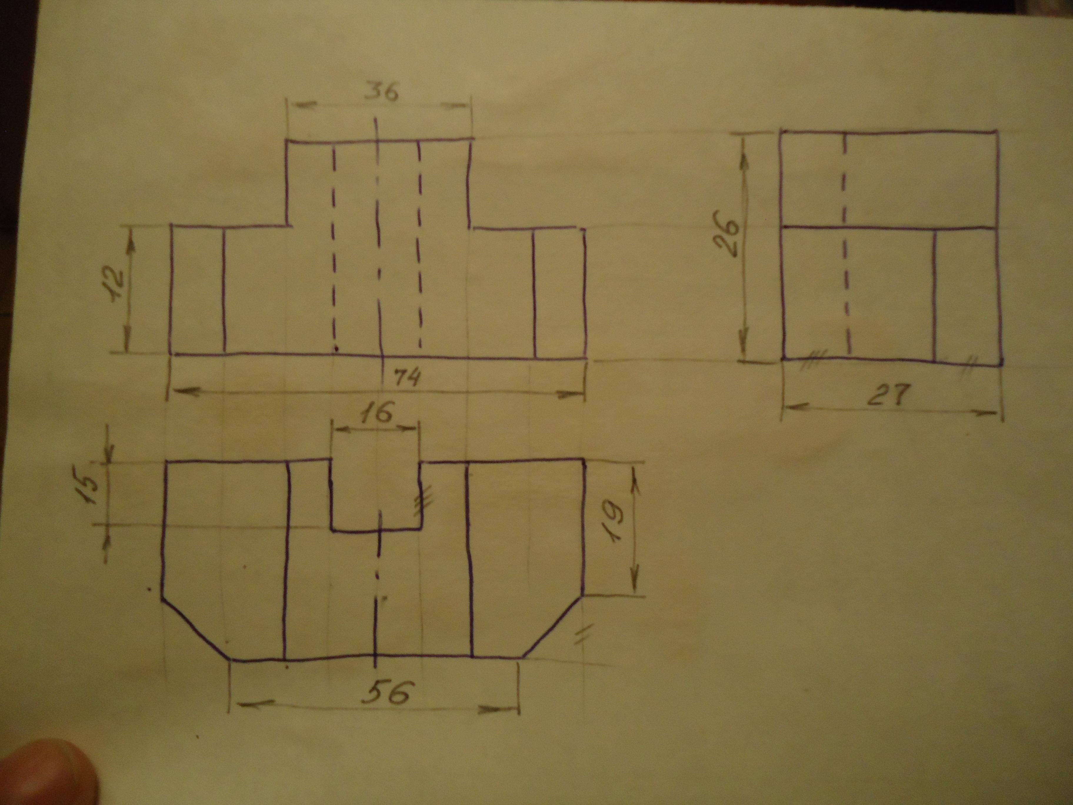 На виде сверху и виде слева помечены равные отрезки двойными и тройными штрихами, чтобы вам легче было строить.