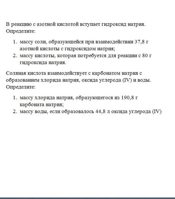 В реакцию с азотной кислотой вступает гидроксид натрия. Определите: