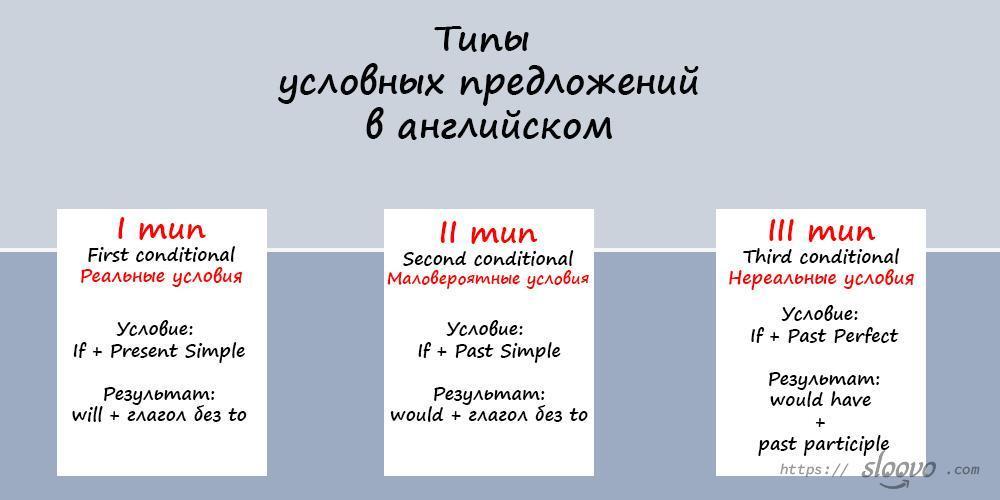 4.First Conditional – условное предложение, которое выражает реальную или очень вероятную ситуацию в настоящем или будущем.