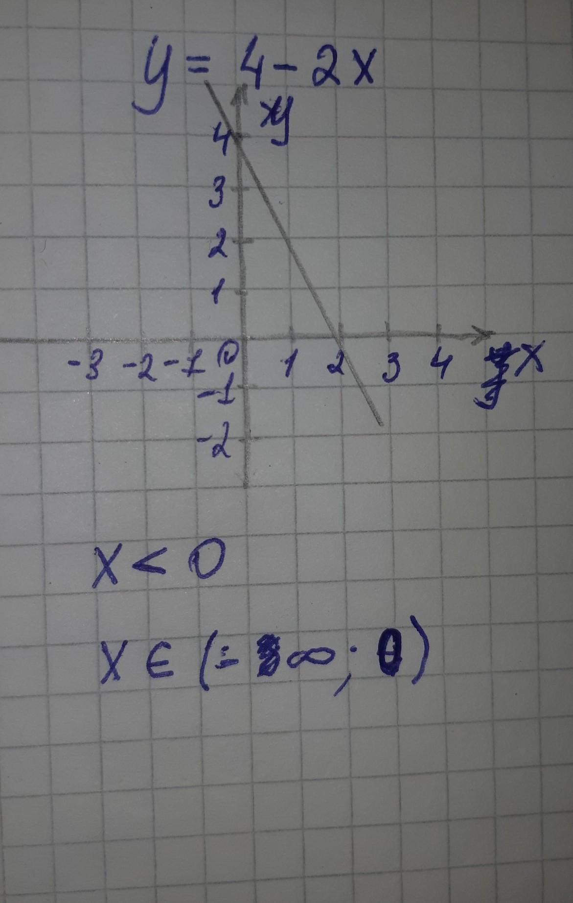 Побудуйте графік y=4-2x. Користуючись побудованим графіком, установіть при яких значеннях аргументу функція набуває від'ємних значень. Срочно!