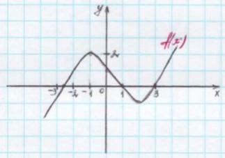 производная там будет больше нуля, где функция возрастает, а именно на промежутках [-3.9;-1] и [2;4.2] и соответственно производная меньше нуля, если функция убывает. здесь по графику видно, что х∈[-1;2]