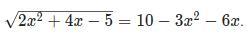 Замена : sqrt(2*x^2+4*x -5) = t t= -3*( t^2+5)/2 +10