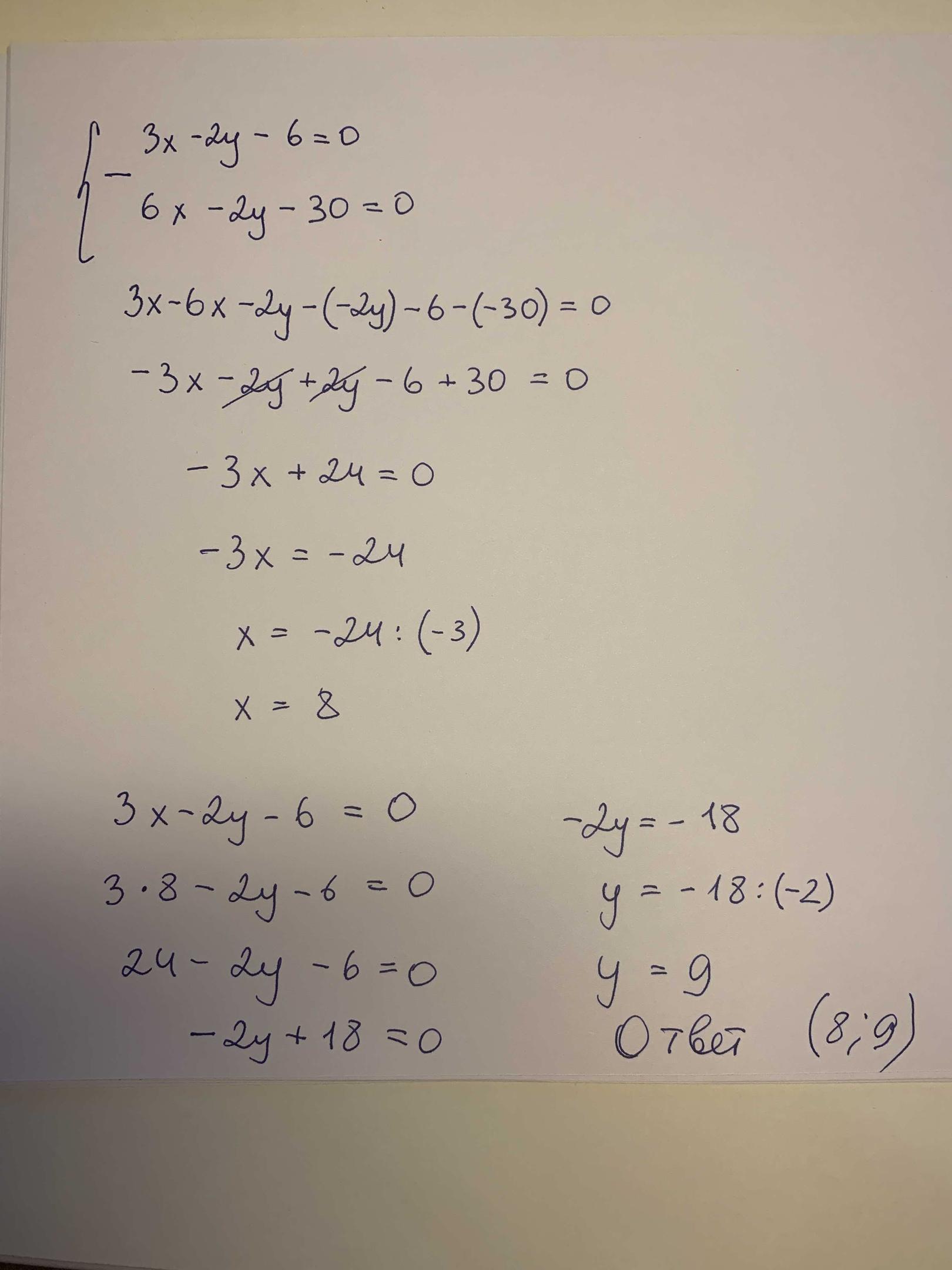_________-3х=-24, х=8; разделим второе на два и выразим через х игрек. получим у=3*8-15=9