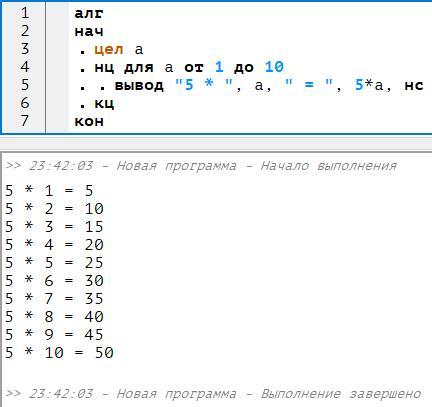 вывод "Таблица умножения на 5",нс