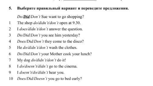 Выберите правильный вариант и переведите предложения.