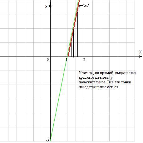 Постройте график функции y = 3x − 3 . Пользуясь построенным графиком, установите, при каких значениях аргумента функция принимает положительные значения.
