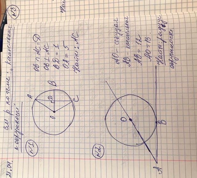 СОД. Они прямоугольные, где ОА и ОС - гипотенуза, а ОД, АД, и СД - катеты и АД=СД, поскольку прямая ОВ проведена из центра окружности. Найдём по теореме Пифагора отрезки АД и СД.