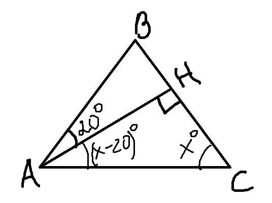 2) Пусть ∠А=∠С=х°, тогда ∠НАС=х-20.