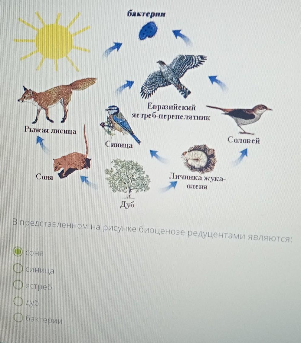 В представленном на рисунке биоценозе редуцентами являются: бактерии