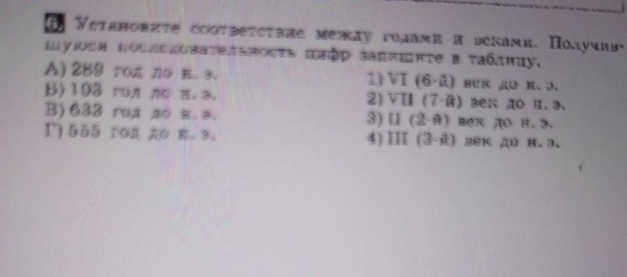 установите сосед соответствие между годами и веками получившуюся последовательность цифр запишите в таблицу