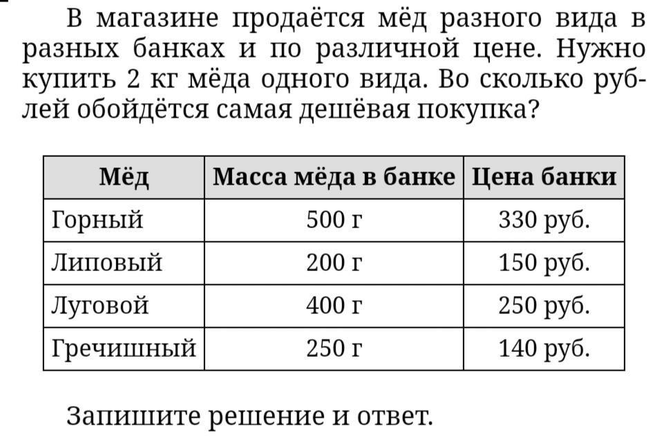 Ответ: В 1120 рублей обойдется самый дешёвый мёд.